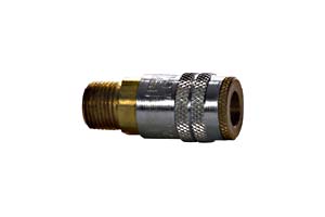 Female Coupler^ A 1/4in. industrial interchange (Hansen compatible) quick-disconnect coupler that includes a shut-off with 3/8in. male pipe thread (NPT).
