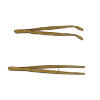 Specifications These forceps are fully coated with brown Teflon® FEP and comply with FDA regulations concerning direct food contact.Wide tips are perfect for lifting cover glassesAvailable in two styles, bent or straight tipTEFLON® is a registered trademark of The Chemours Company FC LLC and used under license by Bel-Art Products, Inc.Thomas No.TypeLength0210U56Bent10.2cm (4 ")0210U55Straight11.4cm (4-1/2 ")