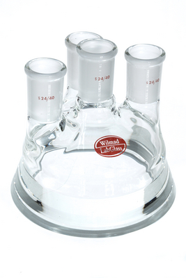 Reaction Vessel Lid, Conical Flange, 4-Neck^ Flange Inside Diameter: 4"; Center Neck: [St] 24/40; Side Necks: [St] 24/40. Supplied With Center Neck And Three Side Necks That Are 120[Degrees] Apart. Bottom Of Lid Is Flat Ground Conical Flange. Neck Id Is Also Flange Size.