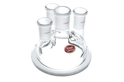 Reaction Vessel Lid, Flat Flange, 4-Neck^ Flange Diameter: 6-5/8"; Center Neck: [St] 24/40; Side Necks: [St] 24/40. Supplied With Center Neck And Three Side Necks.