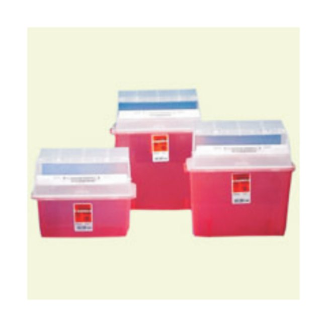 Counterbalance door design allows for the efficient disposal of devices of varying sizes, from a lightweight sharps to a 60cc syringeRecommended fill line is easily visible“FULL” indicator signals when the container capacity has been reachedTranslucent Red