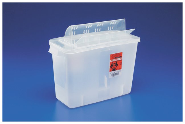 8.5 in. (21.6cm) wide opening easily accommodates larger syringesEconomical horizontal drop maximizes use of container volumeContainers lock to make them secure for final disposal