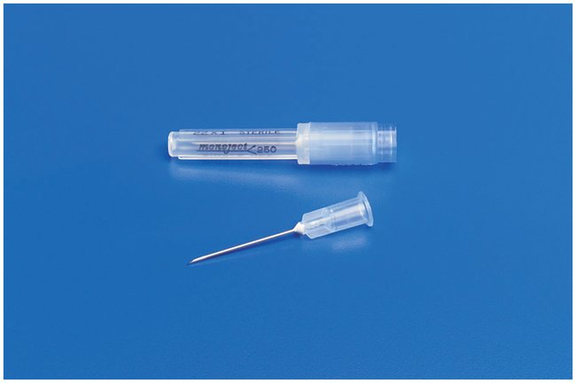 Sterile, Precision-ground, ultra-sharp, tri-beveled, anti-coring surgical-grade stainless steel needles in a variety of sizesImproved special-grade silicone needle lubricant makes injections smoother and less painful for patientTranslucent, color-coded luer lock hub helps identify needle gaugeRegular (A) Bevel needle points for intramuscular and subcutaneous injectio