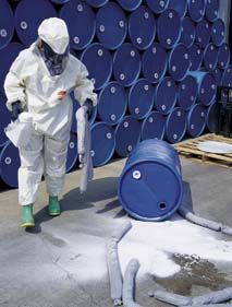 HAZARD-GARD* II Coveralls^ For applications requiring chemical barrier protection. Durable, lightweight fabric, exterior laminated and seams taped with SARANEX* 23-P film. No seams in front. Zipper front, storm flap. Color: white. Level B/C. Elastic wrists and hood. Size: 3x-large.