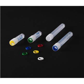 Designed to fit onto the top of our skirted base externally threaded cryogenic vial closures. Provide quick visual indentification of specific vials for ease in organizing inventory. Compatible with P60102 and P60103 skirted base cryo vials.