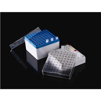Cryo storage boxes are designed for storage of samples as low as -196°C*. Hold both internal and external threaded cryogenic vials. Autoclavable. These boxes provide a small, space-efficient storage system within a freezer. The transparent lid features a numbered grid for easy identification of contents. Designed to hold up to 81 vials in a 9 x 9 aray. *Not recommended for use in the liquid phase of liquid nitrogen. Can be used in vapor phase of liquid nitrogen.