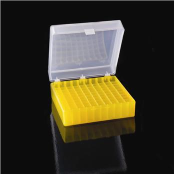 Cryo storage boxes are designed for storage of samples as low as -90°C. Hold both internal and external threaded cryogenic vials as well as storage vials. Autoclavable. These stackable boxes provide a small, space-efficient storage system within a freezer. Include a transparent hinged lid with a secure locking closure and a numbered and lettered grid for easy identification of contents. Designed to hold up to 100 vials in a 10 x 10 aray.