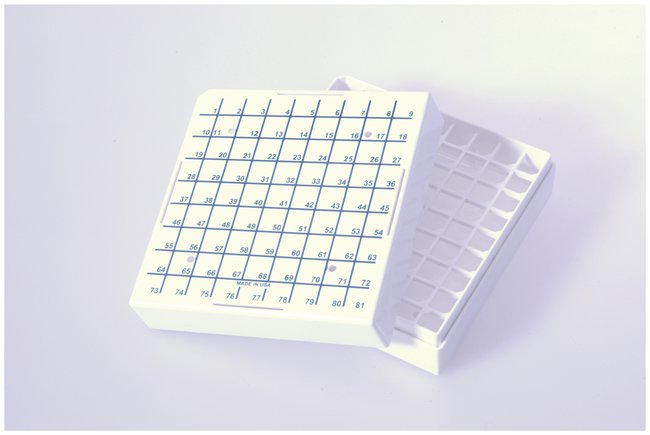 Suitable for ultra-low temperature storage of both internally and externally threaded cryogenic vials81-Place white polycarbonate storage boxesUse in mechanical freezers and liquid nitrogen DewarsCover is printed with a 9 × 9 numbered grid for inventory purposesStackableAutoclavableThis product(s) resides on a Fisher Scientific GSA or VA contract. If you are viewing this page as a nonregistered user, the price(s) displayed is List Price. To view your GSA or VA contract pricing, log in using your account number, or become a registered user by contacting one of our Customer Service teams. You can also view your contract price by searching for this item(s) on GSA Advantage. To place an order, contact Fisher Scientific Customer Service.