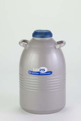 Dewars-LD Series^ 25LD. Dewar offers safe storage of liquid nitrogen in small quantities. Static holding time is 109 days. Evaporation rate is 0.23L per day. Liquid N2 capacity is 25L. Neck diameter is 64mm. Overall height is 655mm. Overall diameter is 396mm.