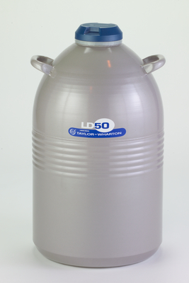 Dewars-LD Series^ 50LD. Dewar offers safe storage of liquid nitrogen in small quantities. Static holding time is 122 days. Evaporation rate is 0.41L per day. Liquid N2 capacity is 50L. Neck diameter is 64mm. Overall height is 828mm. Overall diameter is 475mm.