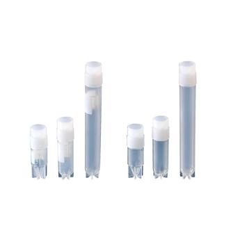 Specifications Specified for mechanical freezing or vapor-phase of liquid nitrogenExternal screw cap also lessens risk of contamination due to handlingSterile12.5 mm diameter tubes (13 mm cap) with conical or round bottom.All externally threaded vials, 5151N02 to R60, are not recommended for liquid nitrogen.Available DNAse- and RNAse-free certification.Thomas No.Bottom StyleSelf StandingWorking Vol. (mL )Qty.Externally Threaded, Starfoot, NO Writing Area5151N33ConicalYes1.0Bx. 5005151N39RoundYes1.8Bx. 4505151N45RoundYes4.5Bx. 300