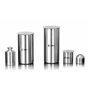 Specifications The BYK-Gardner Weight Per Gallon Cup is a simplified form of pycnometer specially designed to measure the density of a fluid at a standard temperature of 77°F (25°C). The net weight of the air-free sample is determined to the nearest 0.1 gram, and converted by simple factors to either density (pounds per gallon) or specific gravity (density relative to water). These corrosion resistant stainless steel cups are available in 3 sizes: Regular, Midget and Imperial.OperationMix the material thoroughly before pouring a representative sample into the cup. Fill the cup until the liquid level is just below the rim at 25°C or other agreed upon temperature. Avoid trapping air bubbles in the sample.Place the perforated lid on top of the cup and seal it with a careful twisting motion. An excess of the liquid should ooze (not squirt) put of the small hole on top of the snugly fitting lid. Wipe off this excess material, using a soft cloth or tissue paper.Weigh the properly filled cup, (usually to the nearest 0.1 gram), on an appropriate laboratory balance. A tare weight is available with the 3 sizes of cups. It can be used as a counterpoise to determine rapidly the net weight of the sample when an evenarm or trip balance is used. The weight of the tare equals the exact weight of the empty cup and its lid.Using the net weight, compute the pounds-pergallon density or the specific gravity of the sample by the following methodsCalculations:The Regular Cup contains 83.2 grams of water at 25°C. The net weight in grams of the fluid sample is divided by 10 to obtain the weight in pounds per U. S. Standard Gallon. This weight per gallon is multiplied by 0.12 to obtain a specific gravity or the net weight of the cup can be divided by 83.2 for a direct conversion to specific gravity.The Midget Cup has a capacity of 8.32 grams of water at 25°C. The net weight of the fluid sample in grams equals the sample‘s density in pounds per U. S. gallon. To obtain specific gravity, multiply pounds per gallon by 0.12 or divide the net weight of the cup by 8.32.The larger Imperial Cup contains 100.0 grams of water at 25°C; the net weight in grams of the fluid sample is divided by 10 to obtain the weight in pounds per British Imperial Gallon. This weight in pounds is multiplied by 0.10 to obtain the specific gravity or the net weight of the cup is divided by 100 to obtain this figure directly.Importance of Temperature Control: All weight per gallon cups are calibrated with distilled water at the factory before shipment so that the correct net weight of water is retained in the cup at the prescribed temperature of 77°F (25°C). This same standard temperature is recommended when using these calibrated cups. Volume expansion or contraction of both the cup and sample will cause errors if the temperature is not kept under control. In determining an absolute density value both the cup and its contents must be brought to the standard calibration temperature of 77°F or 25°C. However, in determining the relative density values between different samples, all that is necessary is that the cups and its contents be brought to the same temperature before weighing.Thomas No.Cup TypeWater ContentDimensionsWeight8353A01REGULAR U.S. Cup83.2 g1 1/2 " x 31/2 lb.8353A03MIDGET U.S. Cup8.32 g1 " x 1 1/4 "1/4 lb.