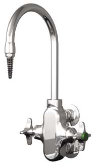 Curb Mounted Gooseneck Mixing Faucets^ Chrome-plated cast brass,serrated hose end,1.0cm(3/8in) IPS inlet shanks.20.3cm (8in) spread gooseneck. CSA certified. Complies with ANSI/ASME A112.18.1M.Faucet with Spread Gooseneck.Swing Faucet