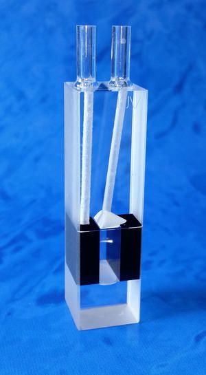 Micro Fluorescence Flow Through Cell Type 59M 10mm^ Micro Fluorescence Flow Through Cell Type 59M, Lightpath: 10mm, Material: IR Quartz, Outer Length: 12.5mm, Outer Width: 12.5mm, Outer Height: 45.0mm, Chamber Length: 10mm, Chamber Width: 4.0mm, Z-Dimension: 15.0mm, Capacity: 0.440ml