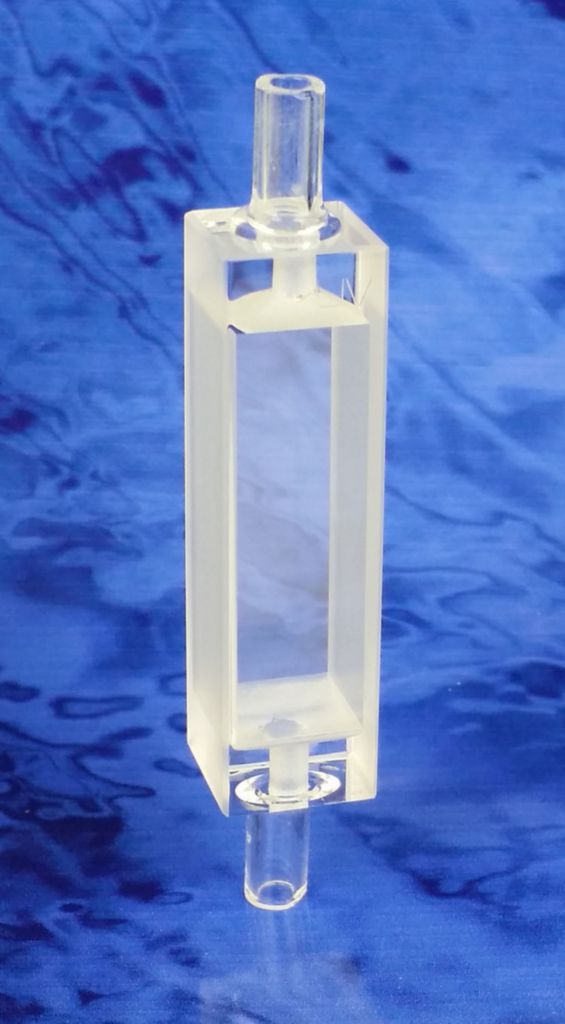 Macro Flow Through Cell Type 501 10mm^ Macro Flow Through Cell Type 501, Lightpath: 10mm, Material: UV Quartz, Outer Length: 12.5mm, Outer Width: 12.5mm, Outer Height: 65.0mm, Inner Length: 10mm, Inner Width: 10.0mm, Inner Height: 35mm, Two windows optically polished, Capacity: 3.300ml