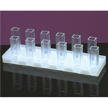 Holds 12 glass, silica or plastic disposable cuvettes (external dimensions 12.5 x 12.5 mm)Permits easy viewing of solution color to be measuredHelps prevent breakageDimensions: Approximately 6 3/4 x 2 x 1/2”H