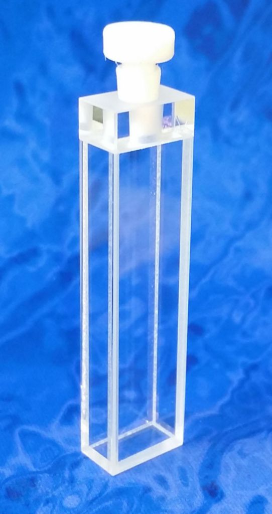 Macro Fluorescence Cuvette with PTFE Stopper Type 21FL 5mm^ Macro Fluorescence Cuvette with PTFE Stopper Type 21FL, Material: IR Quartz, Outer Length: 7.5mm, Outer Width:, Outer Height:, Inner Length (Light Path): 5mm, Inner Width: 10mm, Stopper provides an airtight seal, Capacity: 1.700ml