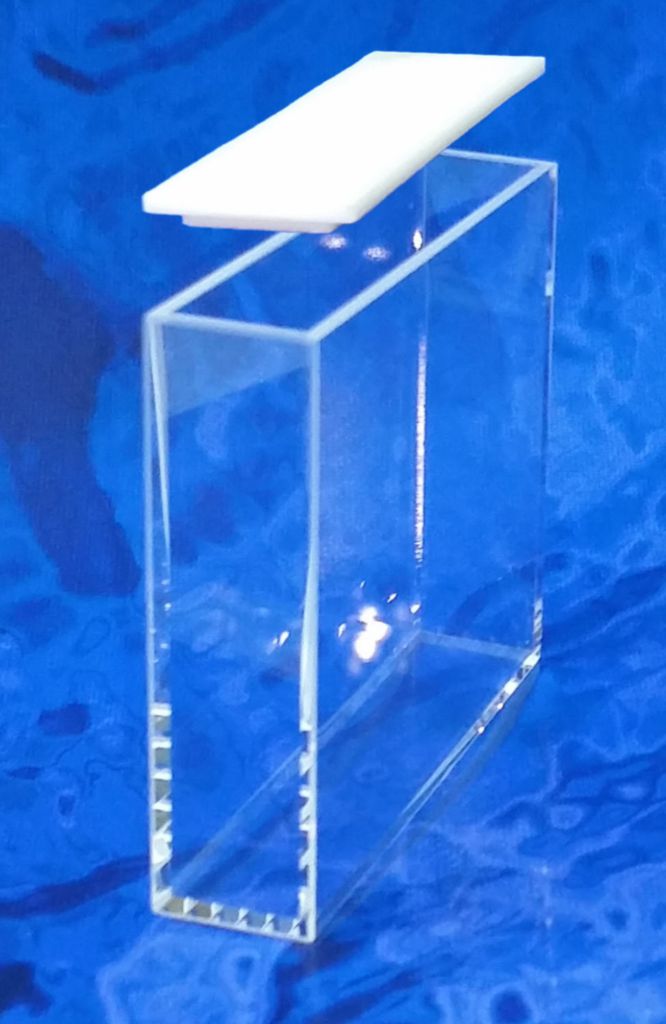 Macro Fluorescence Cuvette with PTFE Cover Type 1FL 50mm^ Macro Fluorescence Cuvette with PTFE Cover Type 1FL, Material: IR Quartz, Outer Length: 52.5mm, Outer Width: 12.5mm, Outer Height: 45mm, Inner Length (Light Path): 50mm, Inner Width: 10mm, 4 windows and optically polished, Size: 17.500ml