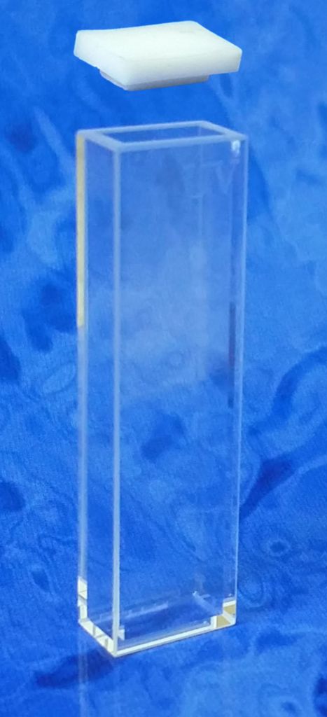 Macro Fluorescence Cuvette with PTFE Cover Type 1FL 5mm^ Macro Fluorescence Cuvette with PTFE Cover Type 1FL, Material: UV Quartz, Outer Length: 7.5mm, Outer Width: 12.5mm, Outer Height: 45mm, Inner Length (Light Path): 5mm, Inner Width: 10mm, 4 windows and base optically polished, Size: 1.700ml