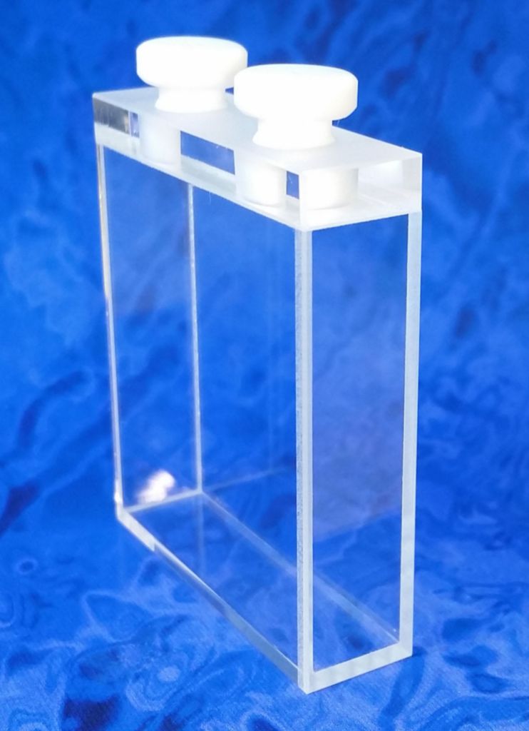 Macro Fluorescence Cuvette with PTFE Stopper Type 21FL 40mm^ Macro Fluorescence Cuvette with PTFE Stopper Type 21FL, Material: Optical Glass, Outer Length: 42.5mm, Outer Width:, Outer Height:, Inner Length (Light Path): 40mm, Inner Width: 10mm, Stopper provides an airtight seal, Size: 14.000ml