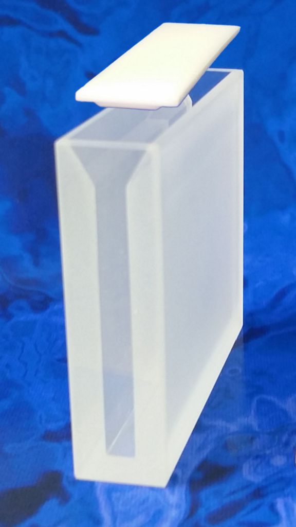 Semi-Micro Cuvette with PTFE Cover Type 9 50mm^ Semi-Micro Cuvette with PTFE Cover Type 9, Lightpath: 50mm, Material: Optical Glass, Outer Length: 52.5mm, Outer Width: 12.5mm, Outer Height: 45.0mm, Inner Length: 50mm, Inner Width: 4.0mm, Two windows optically polished, Capacity: 7.000ml
