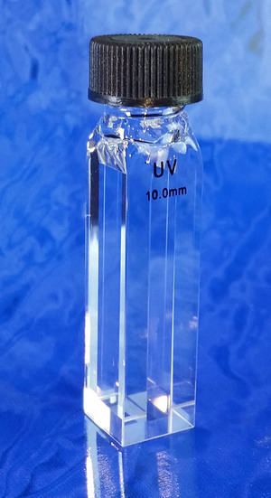 Semi-Micro Fluorescence Screw Cap Cell Type 46FL 10x4mm^ Semi-Micro Fluorescence Screw Cap Cell Type 46FL, Lightpath: 10x4mm, Material: UV Quartz, Outer Length: 12.5mm, Outer Width: 12.5mm, Outer Height: 50.0mm, Inner Length: 10mm, Inner Width: 4.0mm, 13-425 screw cap, Capacity: 1.400ml