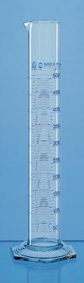 Cylinder^ Cylinder, tall form, BLAUBRAND*, 25 ml, Class A per DIN EN ISO 4788, Borosilicate, 3.3, high-contrast resistant blue enamel print, spout and hexagonal base, ring marks at main points, pack of 2.