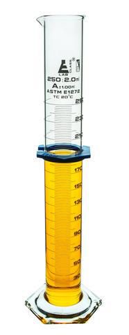 Cylinder Measuring Graduated 10 ml^ Cylinder Measuring, Graduated, Material: Borosilicate glass, Class -A glass hexagonal base, with spout, Complete with protective guard, as per ASTM E1272 standard, Blue Graduation, Sub. Div. - 0.2 ml, Tolerance - /-0.10 ml, Capacity: 10 ml