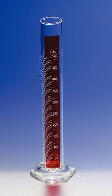 PYREX brand, Lifetime Red, Single Metric Scale, Graduated, Cylinders^ 1000 mL. 64 x 465 mm. Graduation:10.0 mL. For the same cylinder, but with a built-in glass bumper guard, see No. 3046. For bumper guard only, see No. 3066. Tolerance:6.0 /- mL.