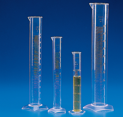 Here is the corrected text: These polymethylpentene cylinders are transparent, shatterproof, and autoclavable. They withstand temperatures of 0 to 120°C (32 to 248°F) when used continuously, and can withstand temperatures as high as 170°C (338°F) for short periods of time. Permanent graduations are molded in. These cylinders meet stringent international quality criteria according to ISO 6706 certification. However, they are not resistant to strong oxidizers, some hydrocarbons, and chlorinated solvents. Available capacities: 10 ml, 25 ml, 50 ml, 100 ml, 250 ml, 500 ml, 1000 ml, and 2000 ml. Graduation intervals: 0.2 ml, 0.5 ml, 1 ml, 2 ml, 5 ml, 10 ml, and 20 ml.