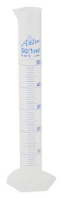 50ML Translucent PP Cylinders CS20^ Easy to read blue printed graduations; resists fading and scratching. Autoclavable; chemically resistant to most acids, bases and solvents. Complies ISO 6706. Tolerance according to DIN 12 680 TT, Class B. Graduations at 1mL. Tolerance is 1mL. Good to 135C.
