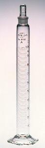 PYREX* Serialized/Certified, Class A, Single Metric Scale Graduated Cylinders with PYREX Stopper^ 50ml cylinder is useful as a mixing cylinder. Graduations are in 1ml increments and are marked in white enamel. Size 16 stopper included. In accordance with ASTM E1272 and E542. NIST traceable. 255mm.