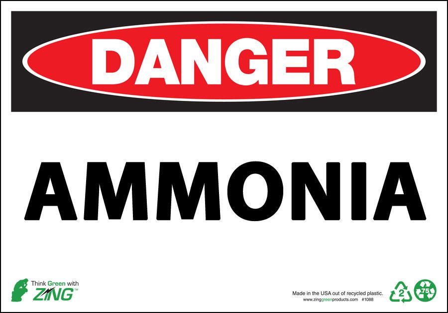 Sign Danger Ammonia Plastic 7X10In^ Danger Sign, Recycled Plastic, Ammonia, Pre-Drilled Mounting Holes & Adhesive Tabs, Impact And Uv Resistant, Ul Validated For Recycled Content, 7X10I