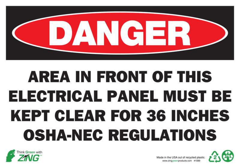 Sign Danger Area In Plastic 10X14In^ Danger Sign, Recycled Plastic, Electrical Panel, Pre-Drilled Mounting Holes & Adhesive Tabs, Impact And Uv Resistant, Ul Validated For Recycled Content, 10X14I