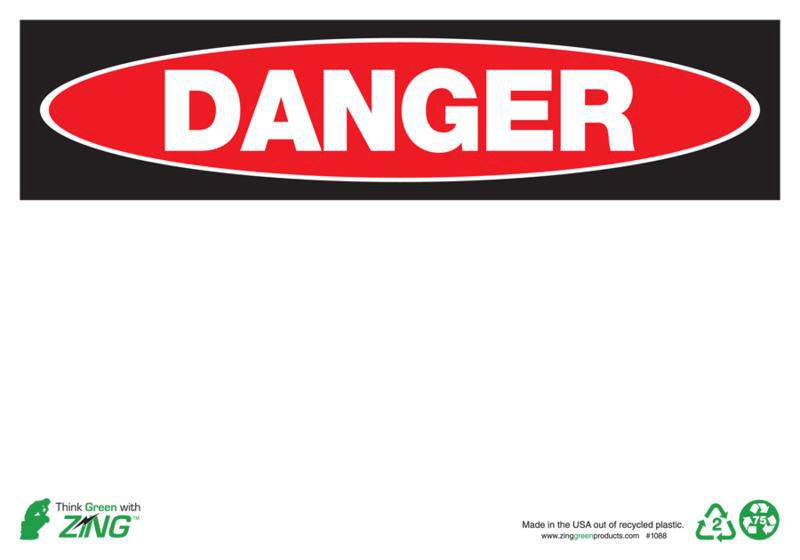 Sign Danger Blank Plastic 10X14In^ Danger Sign, Recycled Plastic, Danger Blank, Pre-Drilled Mounting Holes & Adhesive Tabs, Impact And Uv Resistant, Ul Validated For Recycled Content, 10X14I