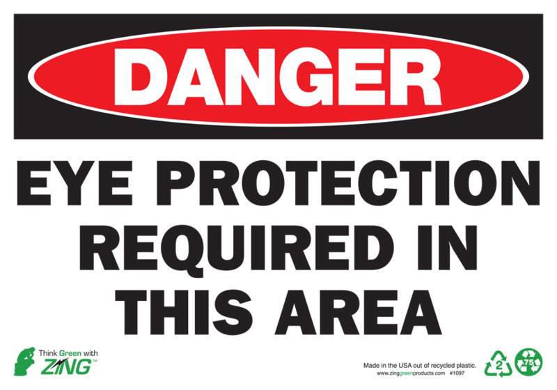 Sign Danger Eye Protection Plastic 10X14In^ Danger Sign, Recycled Plastic, Eye Protection, Pre-Drilled Mounting Holes & Adhesive Tabs, Impact And Uv Resistant, Ul Validated For Recycled Content, 10X14I