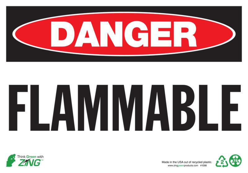 Sign Danger Flammable Plastic 7X10In^ Danger Sign, Recycled Plastic, Flammable, Pre-Drilled Mounting Holes & Adhesive Tabs, Impact And Uv Resistant, Ul Validated For Recycled Content, 7X10I
