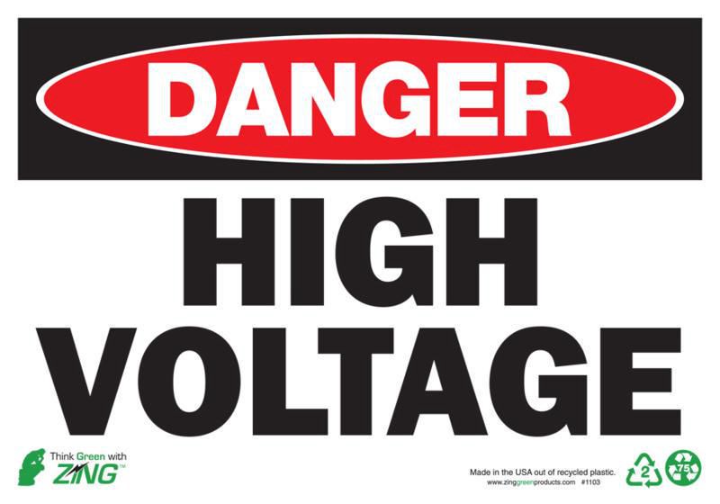 Sign Danger High Voltage Recycl Plastic 7X10In^ Danger Sign, Recycled Plastic, High Voltage, Pre-Drilled Mounting Holes & Adhesive Tabs, Impact And Uv Resistant, Ul Validated For Recycled Content, 7X10I