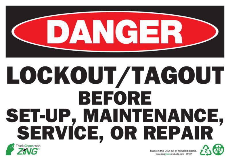Sign Danger Lockout-Tagout Before 10X14In^ Danger Sign, Recycled Plastic, Lockout-Tagout, Pre-Drilled Mounting Holes & Adhesive Tabs, Impact And Uv Resistant, Ul Validated For Recycled Content, 10X14I