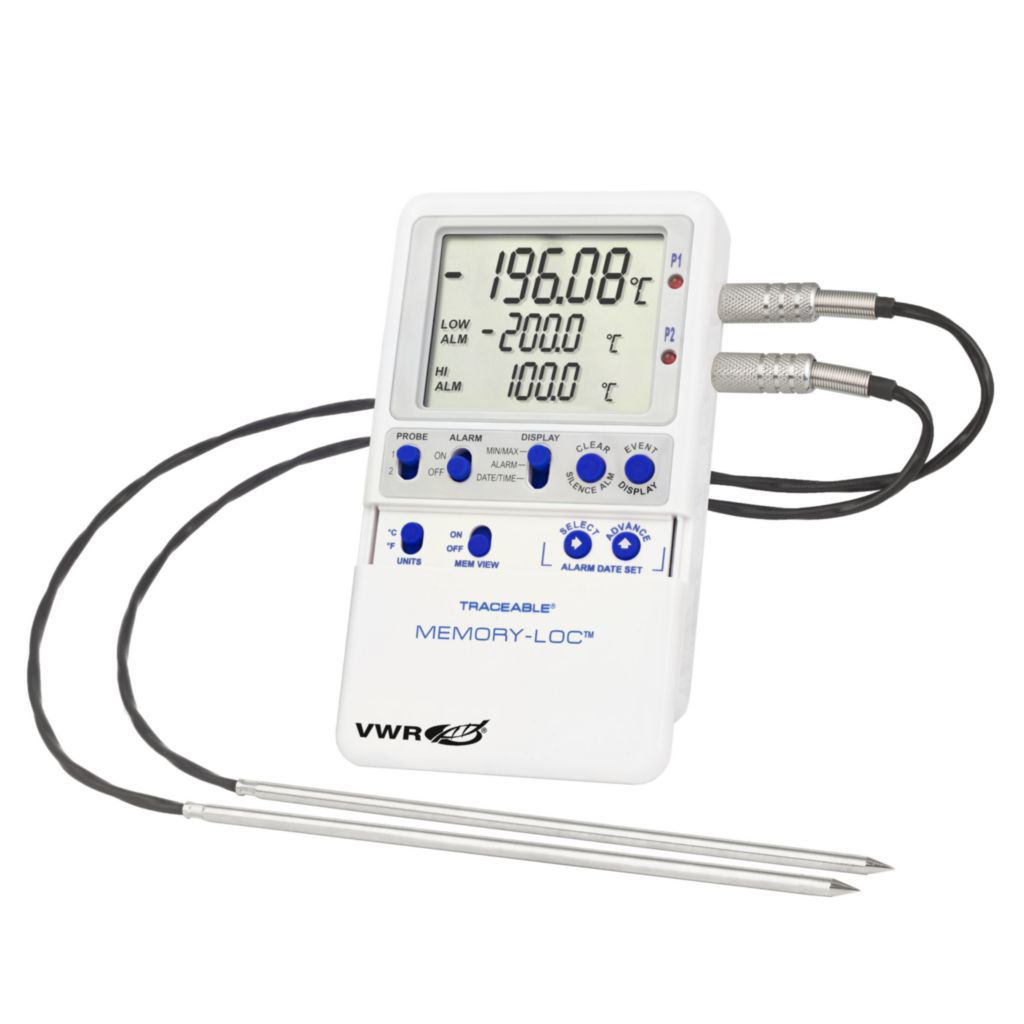 Resolution: T: 0.01 °C, Interface: USB, Covering cryogenic needs for sensitive, irreplaceable biological samples., Hi/Lo alarms and time/date stamps: Alarm tracking feature stores in memory each alarm event detailing when the alarm state occurred, as well as when the unit returned back to within range., 04_BodyText: Smart-Alarm™ Signals out-of-range conditions: When an out-of-range condition is sensed, the Smart-Alarm™ triggers. Smart-Alarm™ features visual and audible indicators which signal continuously until acknowledged, even if the parameter returns to the non-alarm range., 05_BodyText: USB data transfer: This liquid nitrogen temperature monitor allows recorded data, in a CSV format, to be transferred from the thermometer to PC/Mac with a USB flash drive (not included). Specific software is not needed for this thermometer and data can be deleted from memory. Each device has a unique ID that allows multiple units to be used in the same location. This device can be used by organizations that must adhere to distribution adhering to USP 1083, and it is especially useful for transportation monitoring., 06_BodyText: Datalogging features: Monitor readings overnight, on weekends, or for any time period with rolling data log. User-defined datalogging interval of one observation/minute to one observation/24 hours. Memory capacity maintains 2 years of recorded data when using 1 minute intervals and longer when using larger intervals., 07_BodyText: Alarm state indicators include visual LEDs, audio alerts, and flashing LCD segments. Data for up to 10 different alarm events can be retrieved with the most current event viewable on the display. High accurate and reliable. Indicator light will appear when memory is 95%. Unable to delete data from memory once stored. Allows user-defined logging interval from every minute to every 24 hours. Over one million temperature observations., 02_BulletPoint: Liquid nitrogen USB datalogging thermometers that can be used in 21 CFR 11 environments | Memory capacity of 525500 temperature observations | Four calibration points (–196, –80, 0, and 100 °C) | Recorded data (CSV file) may be transferred from base unit to PC or Mac using a USB flash drive, with no additional software needed | Smart-Alarm™ features a visual/audible alarm that continues to alarm even if unit returns to non-alarm conditions | Monitors readings for any period of time | Status indicators: low battery, data downloading status, flashing LCD symbols, and audio alarm indicating active alarms, 08_Certifications: CE marked. RoHS compliant. Traceable to NIST for accuracy. Multi-point calibration on an individually-numbered Traceable® certificate which assures accuracy from an ISO/IEC 17025:2005 (1750.01) calibration laboratory accredited by A2LA. It indicates traceability of measurements to the SI units through NIST or other recognized national measurement institutes (NMI) that are signatories to the CIPM mutual recognition agreement., 10_Ordering: Units are supplied with probe/probes, universal AC adaptor, wall mount, Velcro®, magnetic strips, batteries, and an ISO 17025 Traceable® Certificate., Sensor: 1 stainless steel 316 sensor with 10" cable and platinum RTD sensor, Weight: 113 g, W×D×H: 108×70×19 mm (4.25×2.75×0.75"), Cat. No.: 76047-588, Accuracy: T: ±0.25 °C, Range: T: –196… 105 °C (–328… 221 °F), Resolution: T: 0.01 °C, Interface: USB, Covering cryogenic needs for sensitive, irreplaceable biological samples., Hi/Lo alarms and time/date stamps: Alarm tracking feature stores in memory each alarm event detailing when the alarm state occurred, as well as when the unit returned back to within range., 04_BodyText: Smart-Alarm™ Signals out-of-range conditions: When an out-of-range condition is sensed, the Smart-Alarm™ triggers. Smart-Alarm™ features visual and audible indicators which signal continuously until acknowledged, even if the parameter returns to the non-alarm range., 05_BodyText: USB data transfer: This liquid nitrogen temperature monitor allows recorded data, in a CSV format, to be transferred from the thermometer to PC/Mac with a USB flash drive (not included). Specific software is not needed for this thermometer and data can be deleted from memory. Each device has a unique ID that allows multiple units to be used in the same location. This device can be used by organizations that must adhere to distribution adhering to USP 1083, and it is especially useful for transportation monitoring., 06_BodyText: Datalogging features: Monitor readings overnight, on weekends, or for any time period with rolling data log. User-defined datalogging interval of one observation/minute to one observation/24 hours. Memory capacity maintains 2 years of recorded data when using 1 minute intervals and longer when using larger intervals., 07_BodyText: Alarm state indicators include visual LEDs, audio alerts, and flashing LCD segments. Data for up to 10 different alarm events can be retrieved with the most current event viewable on the display. High accurate and reliable. Indicator light will appear when memory is 95%. Unable to delete data from memory once stored. Allows user-defined logging interval from every minute to every 24 hours. Over one million temperature observations., 02_BulletPoint: Liquid nitrogen USB datalogging thermometers that can be used in 21 CFR 11 environments | Memory capacity of 525500 temperature observations | Four calibration points (–196, –80, 0, and 100 °C) | Recorded data (CSV file) may be transferred from base unit to PC or Mac using a USB flash drive, with no additional software needed | Smart-Alarm™ features a visual/audible alarm that continues to alarm even if unit returns to non-alarm conditions | Monitors readings for any period of time | Status indicators: low battery, data downloading status, flashing LCD symbols, and audio alarm indicating active alarms, 08_Certifications: CE marked. RoHS compliant. Traceable to NIST fo