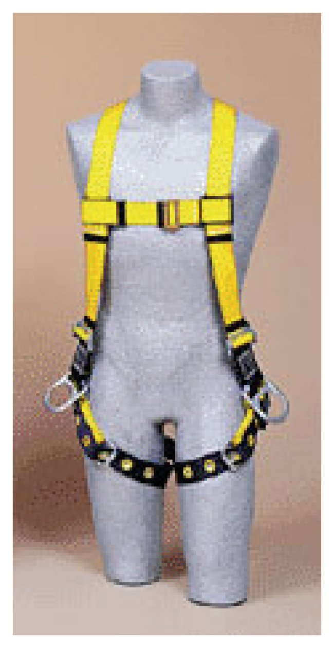 Spring-loaded stand-up dorsal D-ring design ensures fast, easy and safe connectionsRip-stitch indicators allow to inspect the harness at glance, for prior damaging impact loadsHarness falls into place, allowing quick and easy donningSide D-rings for positioningAdjustable non-slip chest strap with easy to use pass-thru buckleTongue buckle leg straps for ease of use and will not looseLanyard keepers holds unused snap hooks and help reduce trip hazardRevolver vertical torso adjuster provides simple and fast adjustment eliminating loose ends and locks webbing into place preventing slippageVelcro cover protects harness labels and holds I-Safe™ ID tagComplianceMeets ANSI™ Z359.11 requirements.