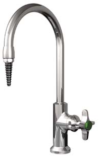 Single Gooseneck Faucet^ Deck mounted. Chrome plated brass. 15.2cm spread gooseneck and removable straight serrated hose connector. Valve has renewable unit with replaceable stainless steel seat. Includes 1.27cm IPS threaded shank, locknut, washer. CSA certified. Complies with ANSI/ASME A112.18.1M.