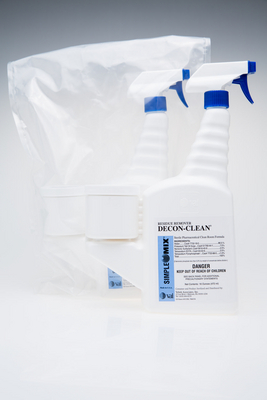 Decon-Clean* Simplemix System^ 473Ml. For Washable, Nonporous Surfaces. Designed To Remove Residues Left Behind By Disinfecting Agents. Filtered At 0.2ªm, Gamma Irradiated, And Double-Bagged. One-Step Residue Remover Dilutes To 1:128 In Water For Injection. Usp Tested. Sterile.