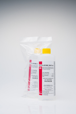 DECON-SPORE 200 Plus* Sterile Disinfectant^ Stabilized mixture of peracetic acid and hydrogen peroxide for sterilization of manufacturing, packaging, and filling equipment in aseptic processes. Aseptically filtered at 0.2u. Lot specific Certificates of Analysis and Sterility provided. Size: 384.4mL.