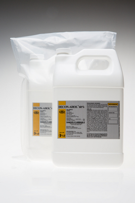 DECON-AHOL* WFI 60% Sterile Isopropyl Alcohol Solution^ 60% isopropyl alcohol and 40% USP Water for Injection. Prefiltered to 0.22u, gamma irradiated, and packed in double bag. Lot-specific Certificates of Irradiation and Analysis, LAL Testing Analysis, and Sterility Report. Size: 3.78L container.