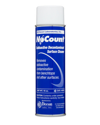 NoCount* Aerosol Spray^ Removes radioactive contaminants from hard surfaces. NoCount* foaming action helps to lift and trap particles so they can be easily wiped or rinsed away. Safe to use on all hard surfaces.