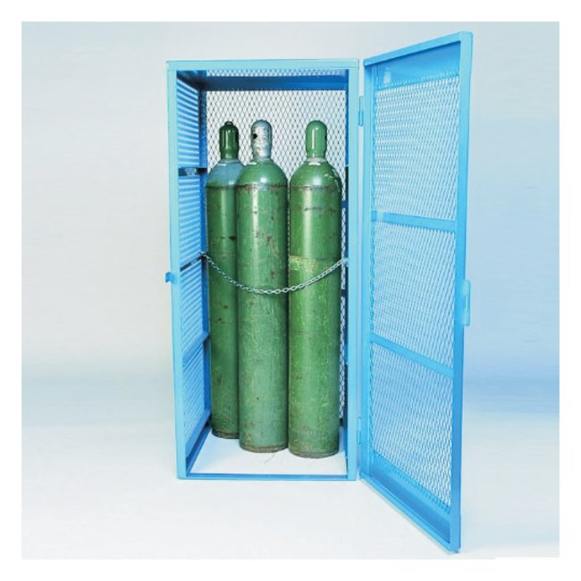 Open steel mesh from sturdy expanded metal construction prevents gases from accumulatingSolid welded angle frame construction provides years of serviceCages are easily relocatedOrder InfoShipped fully assembledComplianceConstruction provides compliance with NFPA codes and OSHA regulatio