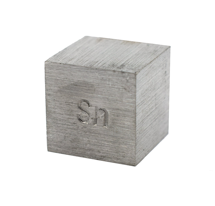Single Density Cube, Tin (Sn) - with Element Stamp. Solid Tin density cube with 20mm (0.78 inch) sides. Cube features element stamp for easy identification. Excellent for physics classrooms. Density Cubes have a wide range of educational applications for all grade levels, including density investigation, specific heat and specific gravity exploration. Due to the nature of raw metals, some oxidation or corrosion due to humidity and storage may occur. Simply scuff any oxidation off to make cube look brand new again. These density cubes are designed to be used in an educational setting and are not fabricated using ultra high precision machining. Expect tolerances in the /- 5% range of any stated dimensions (although they are generally much tighter). The Eisco Labs Density Investigation series is designed to help students identify and figure out mass, understand the relationship between mass/volume/density, understand specific heat and specific gravity, and other introductory physics and chemistry concepts.