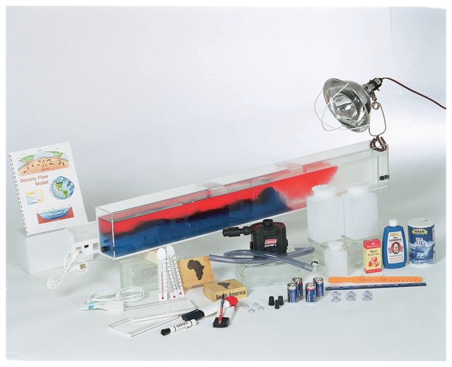 Scientific inquiry techniques show how density concepts relate to plate tectonics, sea-floor spreading, ocean currents and many more phenomena.3 gal. (11.3L) acrylic tank displays the flow of brightly colored fluidsProvides visual representations of concepts related to geology, meteorology and fresh and saltwater systemsDesigned to engage students while using scientific thinking strategiesActivities conclude with application questions related to real-life situationsIncludes all necessary materials and a 65-page manual with instructions, activity masters and answer keysL × W × H: 44 × 3.75 × 6 in. (112 × 9.5 × 15cm)Density Flow Model “Junior”Smaller version of the originalDoes not include the seafloor spreading simulation or the upwelling portion of the thermocline activityIncludes 51-page manualL × W × H: 22 × 3.75 × 6 in. (56 × 9.5 × 15cm)
