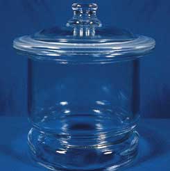 Glass Desiccator^ Clear, heavy glass construction. Cover has ground-on knob. Porcelain plate not included. ID: 203mm. Inside height: 203mm.
